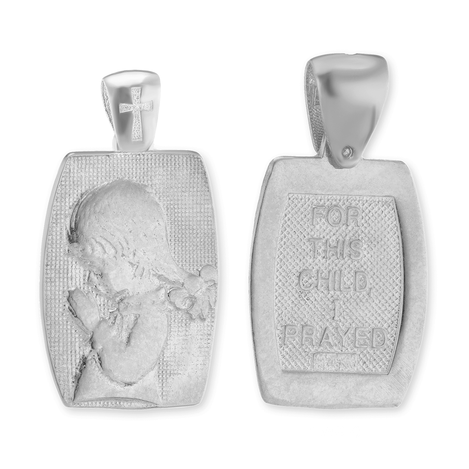 Doppelseitiger Anhänger „Betendes Kind“ aus Sterlingsilber, veredelt mit 14-karätigem Gelbgold.