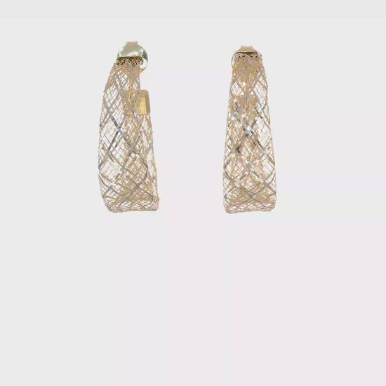 14-karätige gelb- und weißgoldene Mesh-Stretch-Ohrstecker