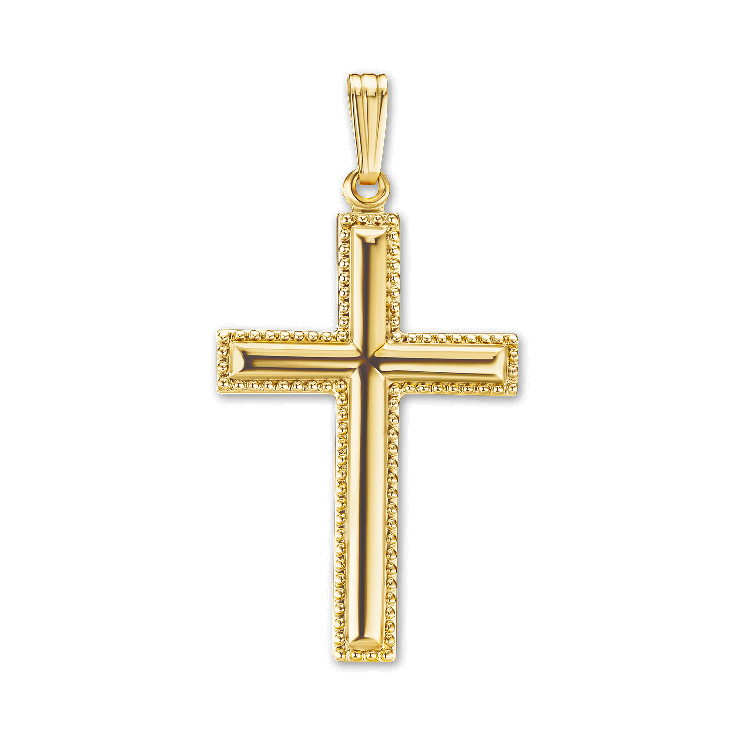 Klassisches, erhabenes Kreuz mit detailliertem Rand aus 14-karätigem Gelbgold