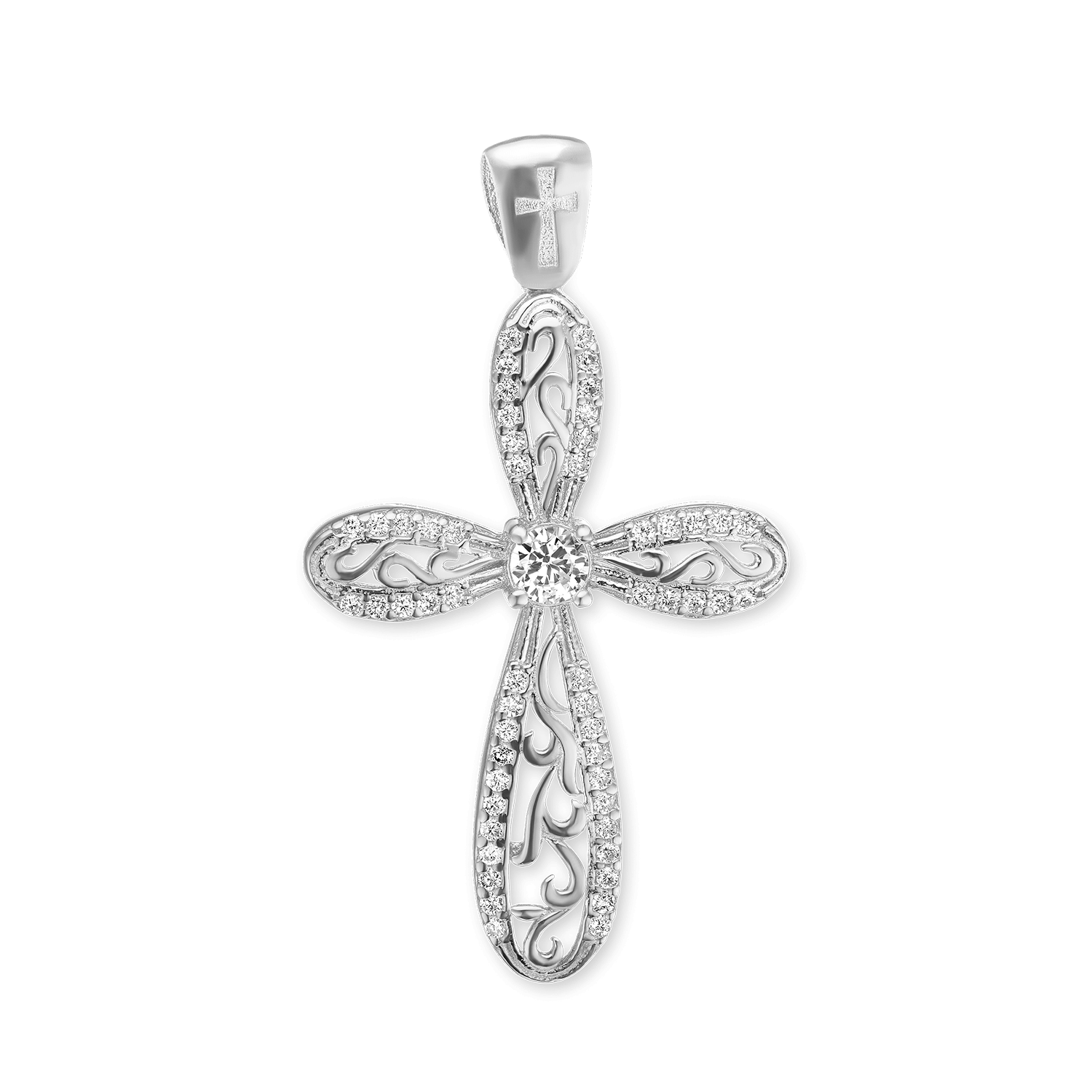 Scrollkreuz-Anhänger mit Zirkonia in Sterlingsilber