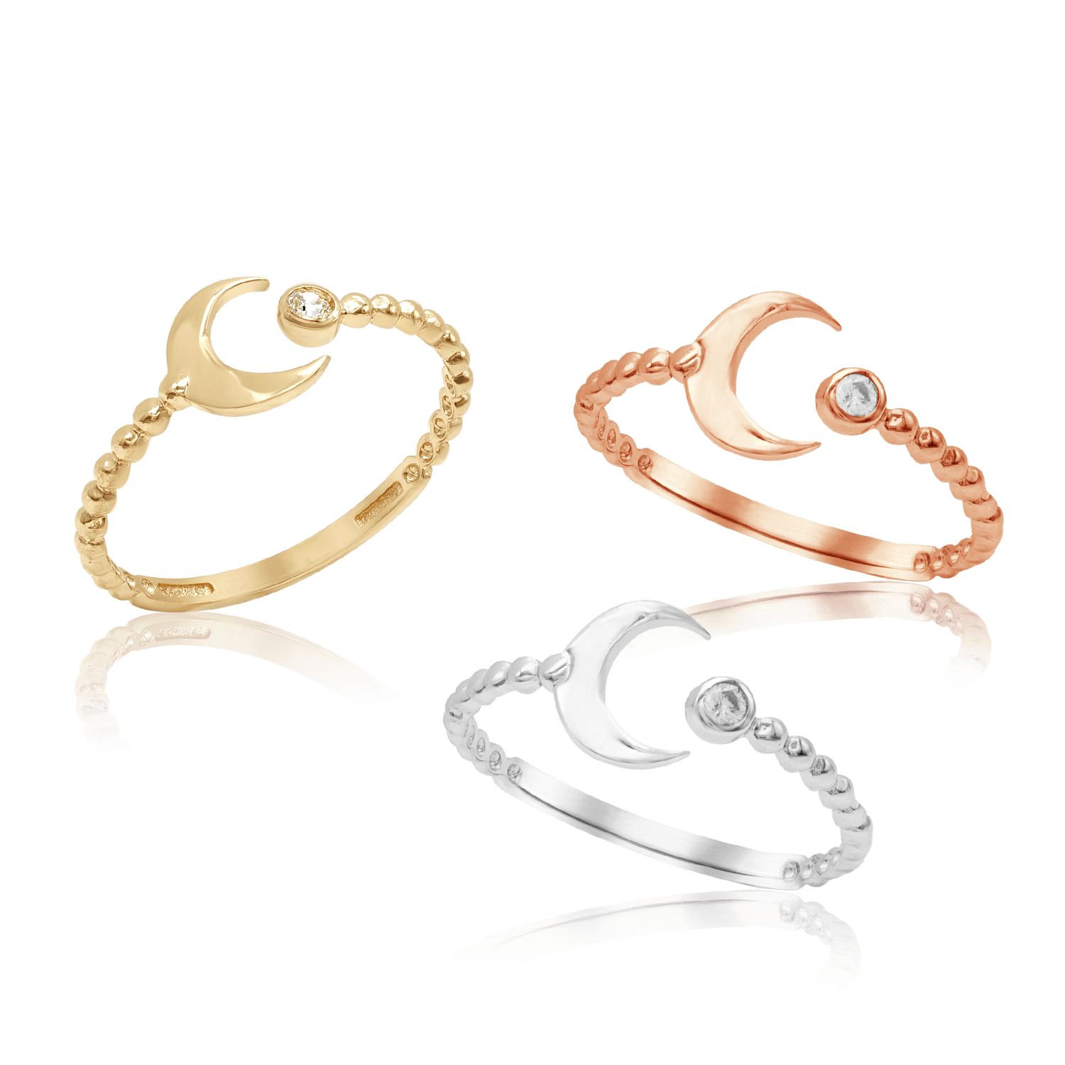 Der Halbmondring besticht durch seine anmutige, vom Mond inspirierte Kurve, die mit funkelnden Diamanten in 14-karätigem Gold besetzt ist. Dieses elegante Schmuckstück fängt die Schönheit einer Mondsichel ein und symbolisiert Neubeginn und weibliche Energie. Seine zarte Silhouette harmoniert wunderbar mit anderen Ringen und setzt gleichzeitig als Solitärring ein starkes Statement.