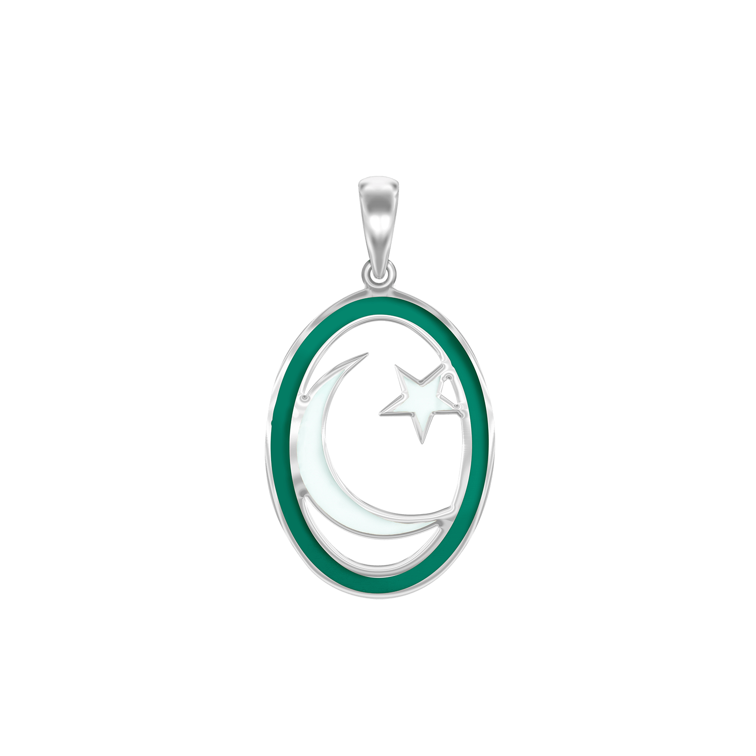 Sternsichel-Anhänger mit grüner Emaille aus Sterlingsilber