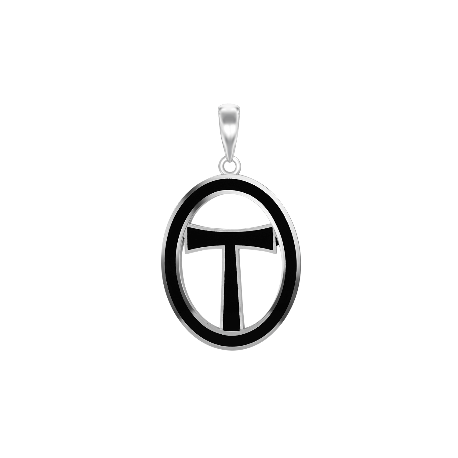 Tau-Kreuz-Medaillons mit schwarzer Emaille aus Sterlingsilber