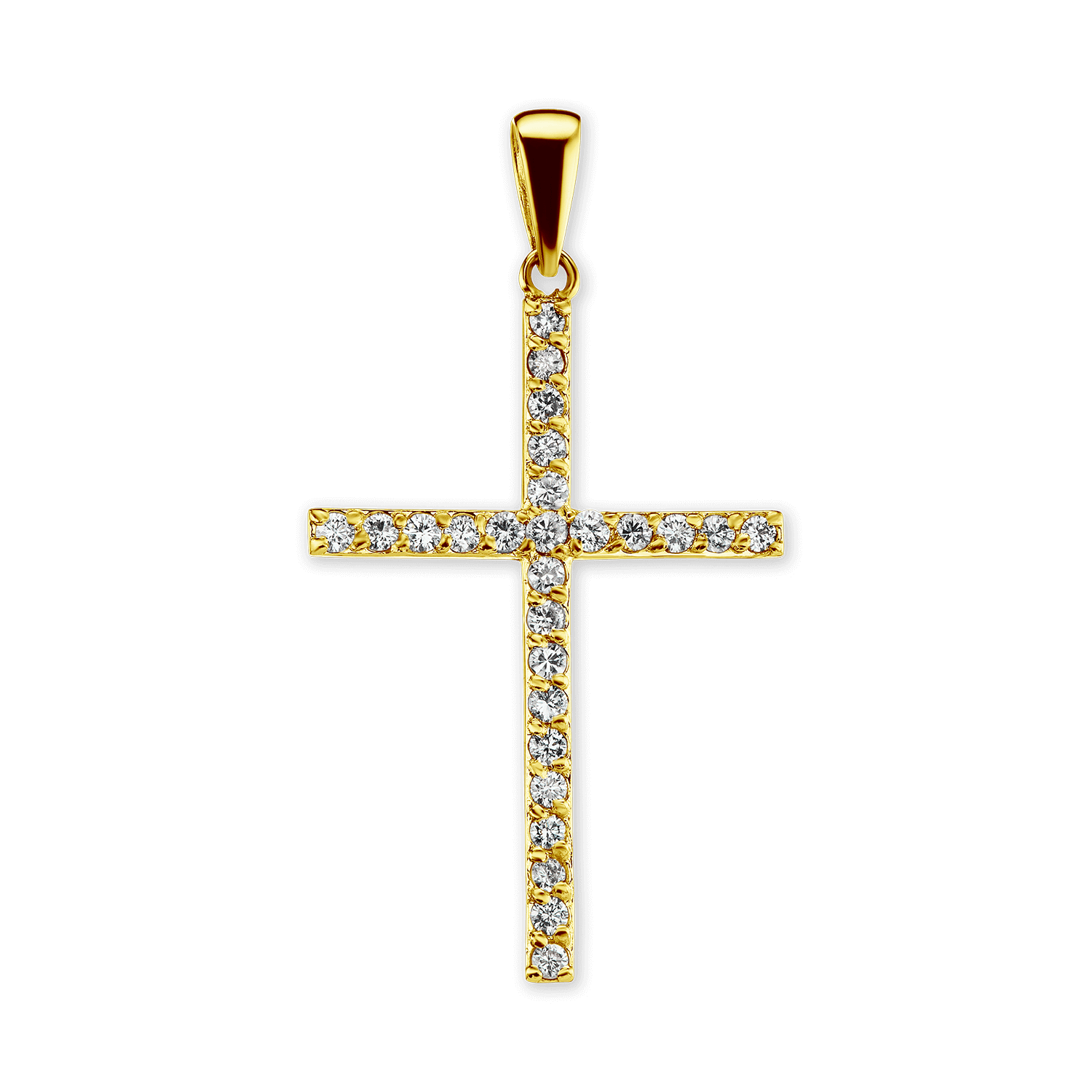 Schmaler Kreuzanhänger mit Diamanten in 14-karätigem Gelbgold