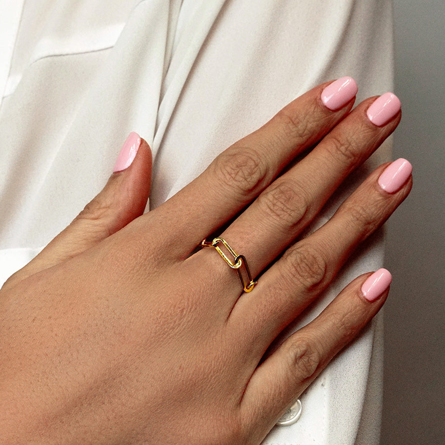 Dieser Ring ist perfekt für alle, die modernes Design mit luxuriöser Verarbeitung schätzen. Seine Glieder in Form einer Büroklammer und der strahlende Goldglanz verleihen jedem Look eine elegante Note. Tragen Sie ihn solo für einen zeitgemäßen Stil oder kombinieren Sie ihn mit anderen Schmuckstücken, um Tiefe und optische Akzente zu setzen.