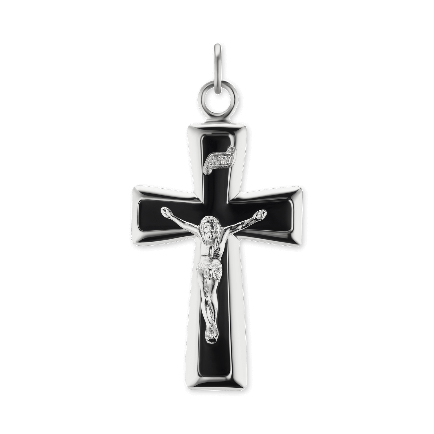 Traditioneller Kruzifix-Anhänger mit schwarzer Emaille aus Sterlingsilber