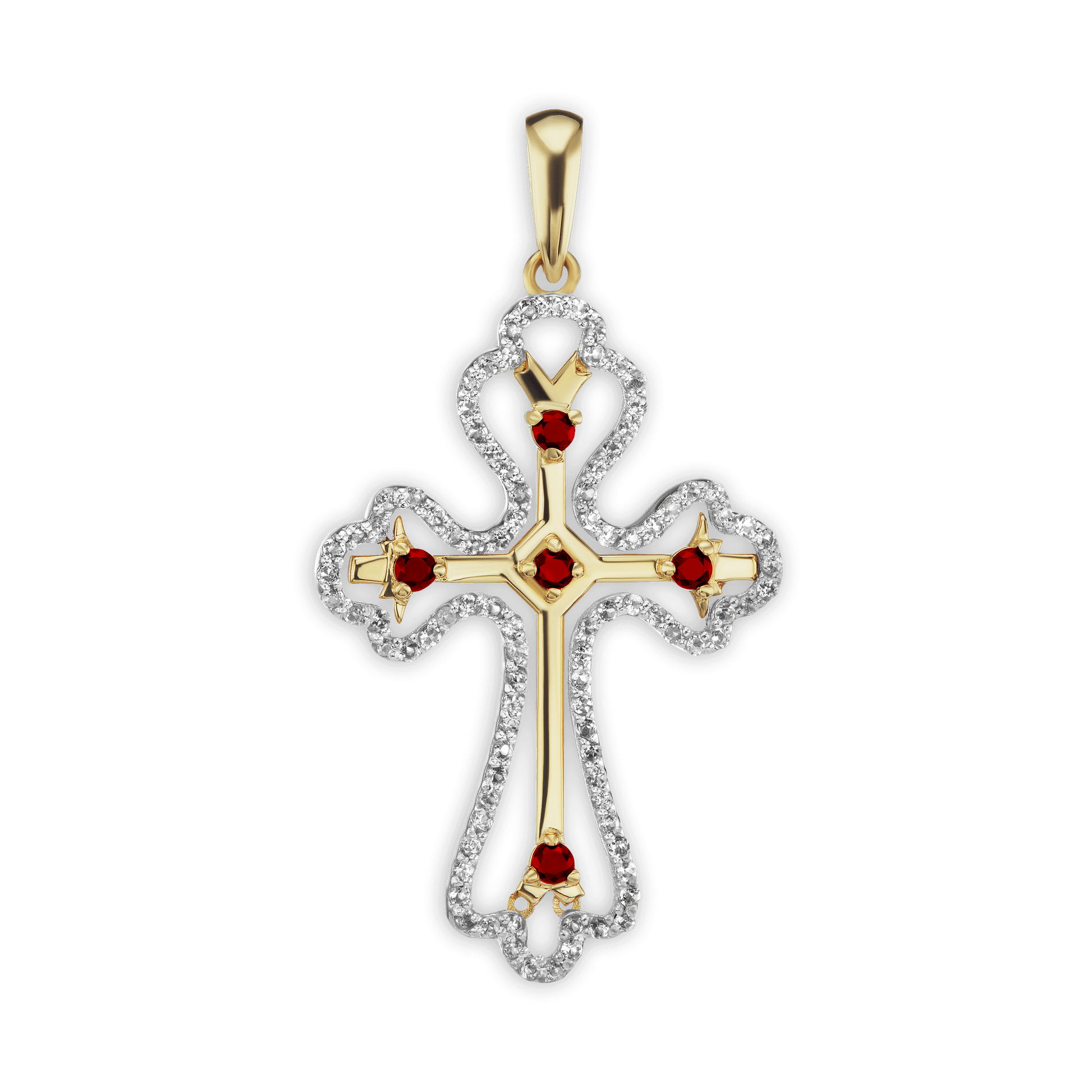 Kleeblatt-Kreuzanhänger mit orangefarbenem Zirkonia in 18-karätigem Gelbgold