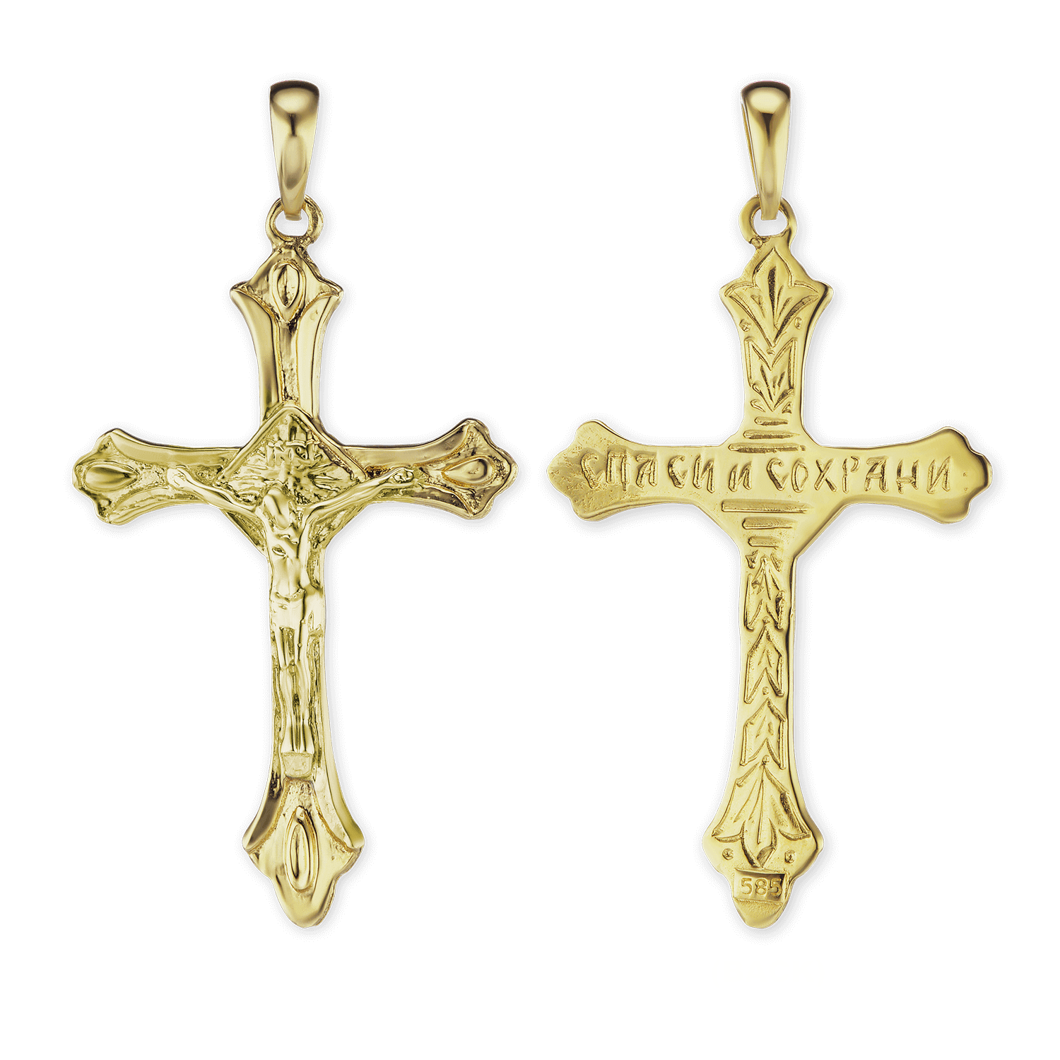 Kleeblatt-Kreuzanhänger aus 14-karätigem Gelbgold
