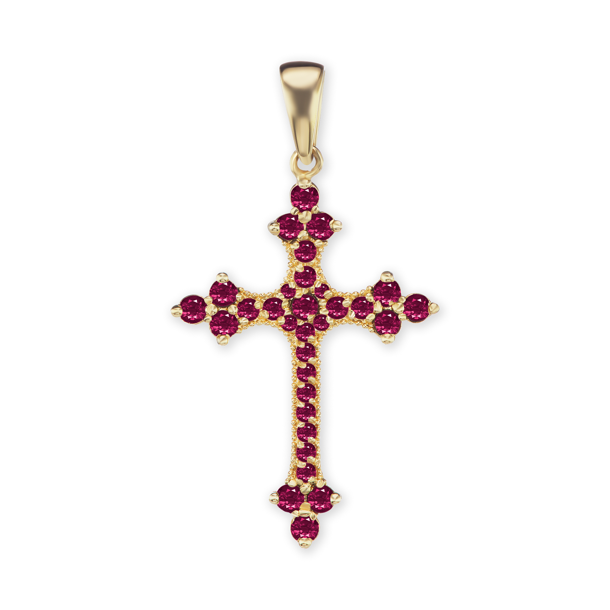 Trinity-Kreuz-Anhänger mit rosa Zirkonia in 18 Karat Gelbgold