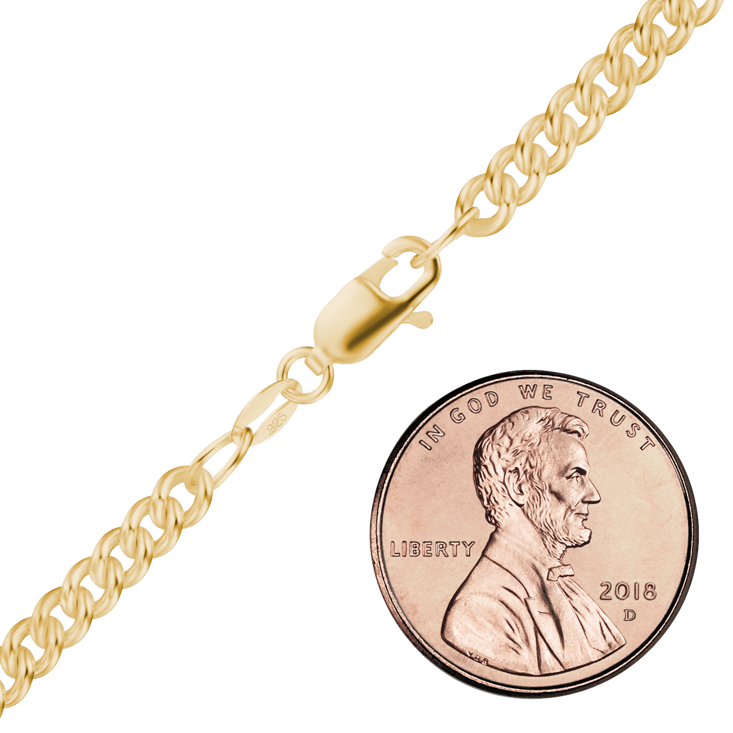 • Medium round curb links with 18K yellow gold plating