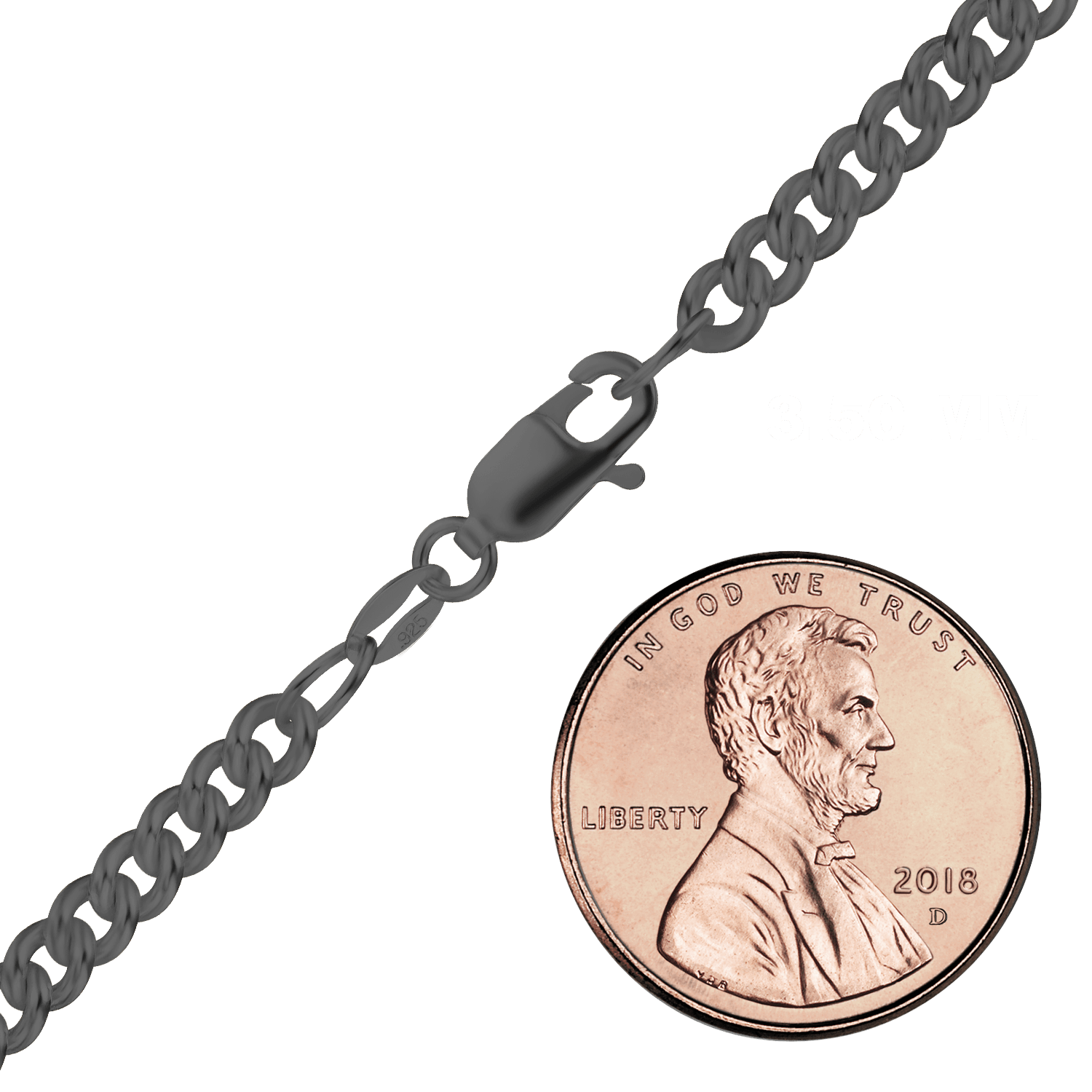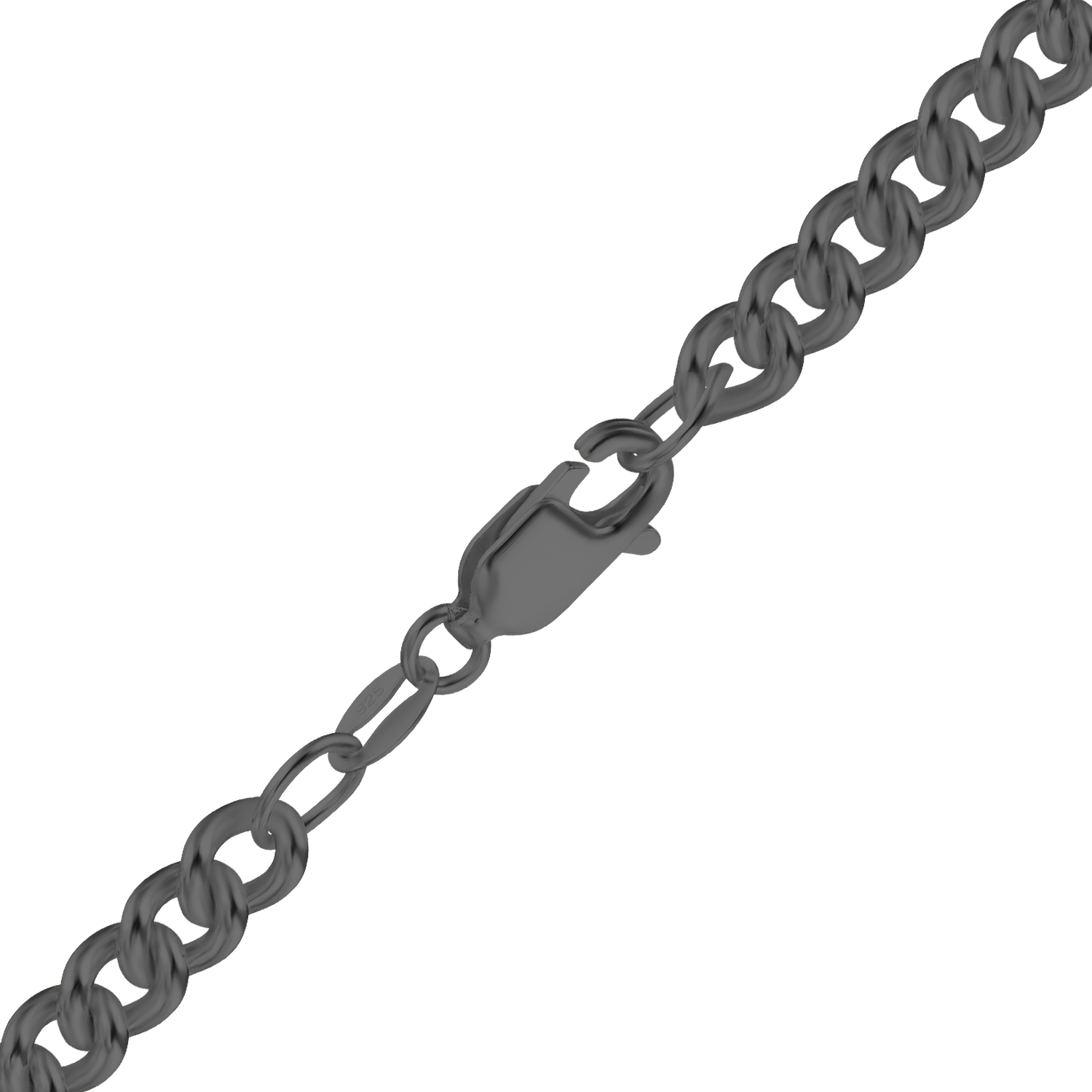 • Medium round curb links with black rhodium plating