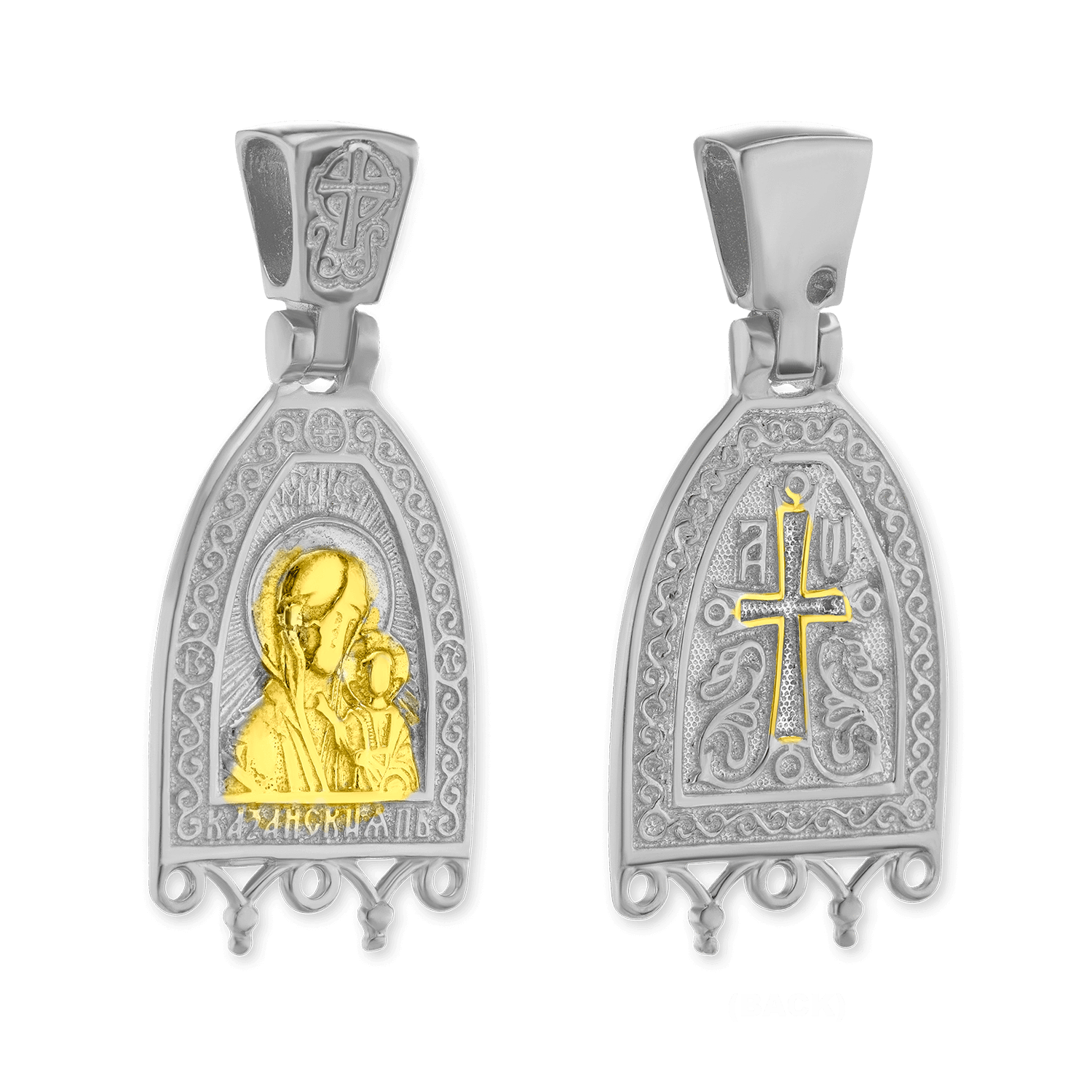 Sterling Silver Two-Tone Madonna and Child Byzantine Double-Sided Pendant