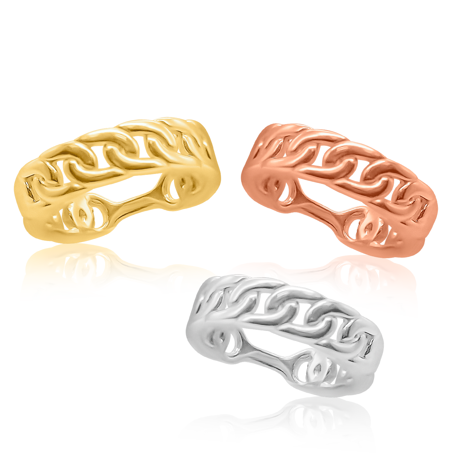 The Cuban Curb Ring features the iconic Cuban link chain pattern transformed into a bold band in 14K Gold. This statement piece brings street-style edge and luxury together. The interlocking links create texture and dimension, making it perfect for those who love jewelry with attitude and presence.